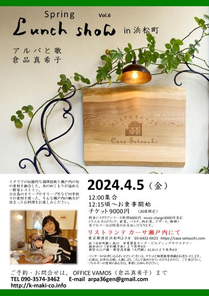 瀟洒(しょうしゃ)なレストランで、ちょっと気取ったディナーショー仕立てのコンサートを、お昼の時間でリーズナブルな価格でご提供いたします。